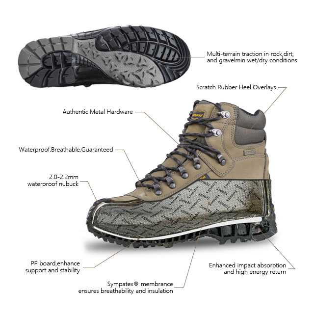 Notranji čevelj je prekrit z nemškimi nepremočljivimi nogavicami Sympatex, ki so zračne in nepremočljive ter ohranjajo vaše noge vedno suhe.