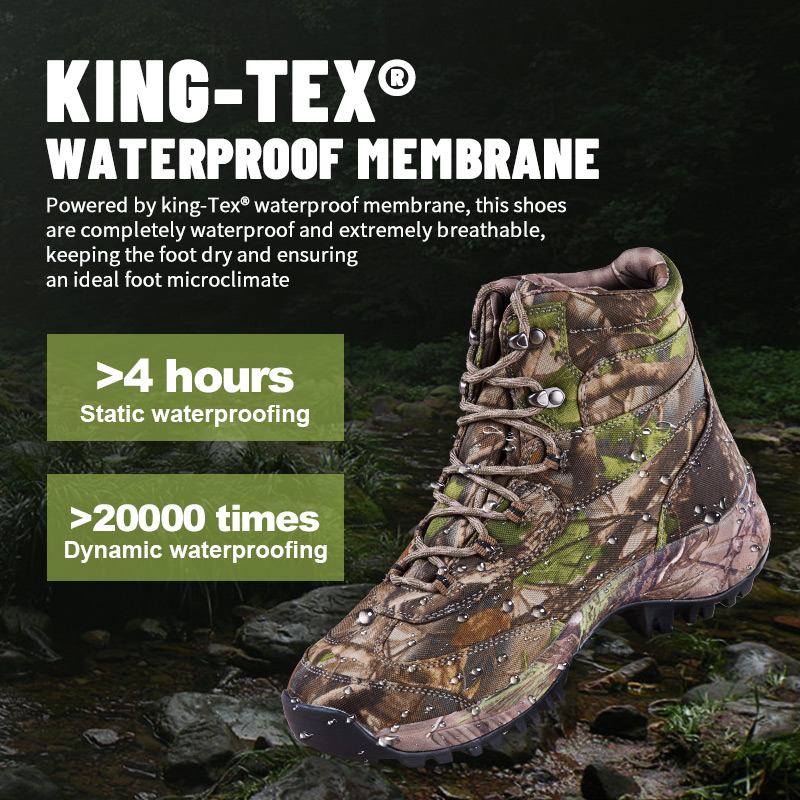 Lovski škornji Kingtex z nepremočljivo membrano ohranjajo vaša stopala suha do kosti skozi močvirje in blato, medtem ko vam prikriti dizajn pomaga, da izginete v pokrajini. Brez škripanja. Brez motenj. Samo vi in lov. Za dodatne informacije nam pošljite povpraševanje.