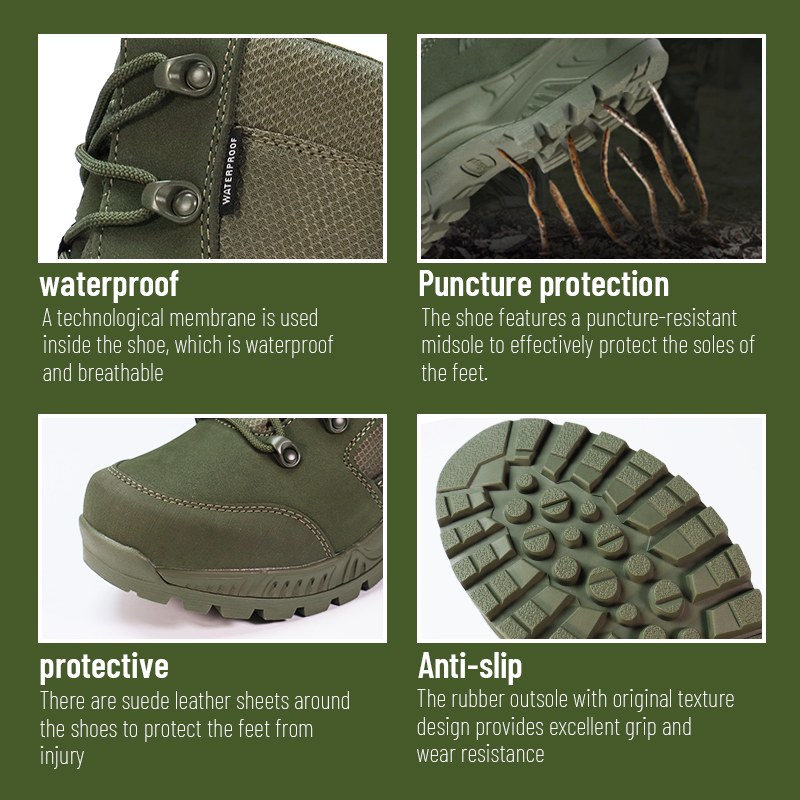 Ti nepremočljivi bojni škornji, odporni na predrtje, so na zalogi in pripravljeni za pošiljanje, naročila pa se začnejo pri samo 10 parih. Za več podrobnosti ali poizvedbe o cenah se obrnite kadar koli. Na voljo je tudi prilagoditev z minimalnim naročilom 800 parov. In ta model ima naslednje prednosti: