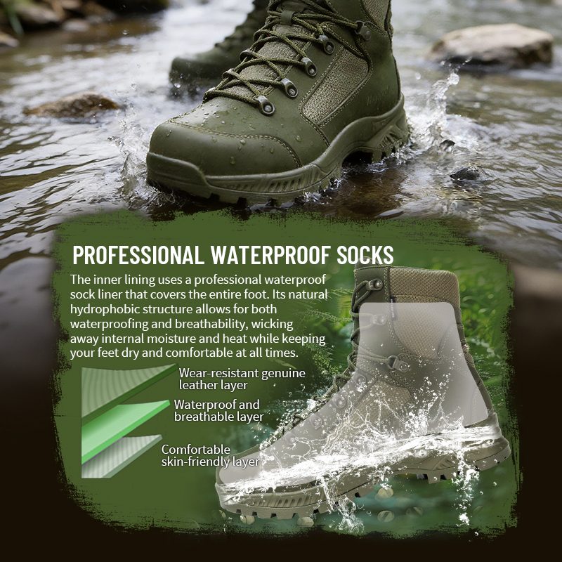 Neraven teren. Skrite nevarnosti. Nepredvidljiv teren. Vodotesni bojni škornji, odporni na predrtje, so ustvarjeni za trenutke, ko si ne morete privoščiti pogleda navzdol in skrbi. Zasnovan z vmesnim podplatom, odpornim na predrtje, ki zaustavi žeblje, steklo in ostre odpadke, ter popolno vodotesno zaščito, ki vam omogoča premikanje v mokrih razmerah. Za dodatne informacije nam pošljite povpraševanje.
