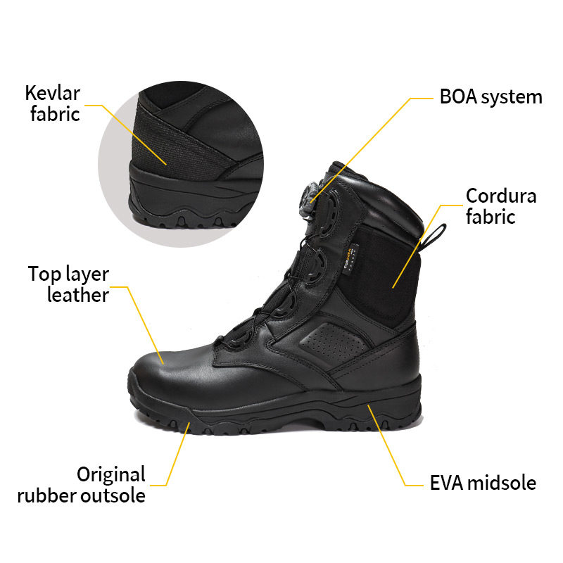 Sekunde so pomembne. Ko vas zahteva dolžnost, vas policijski škornji Quick-on/off System pripravijo in hitro odidejo skozi vrata. Poseben vstopni sistem vam omogoča varno zaklepanje v nekaj sekundah, brez izgubljenega gibanja. Za dodatne informacije nam pošljite povpraševanje.