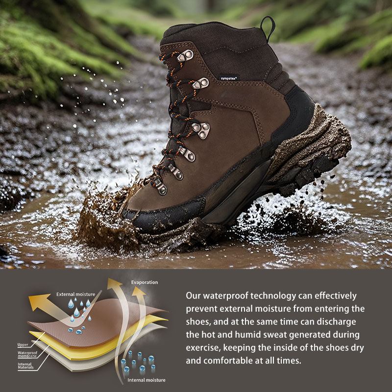 Vodoodporen, ki mu lahko zaupate. Vzdržljivost, ki gre daleč. Ti nepremočljivi vzdržljivi pohodniški čevlji Sympatex, zasnovani z membransko tehnologijo Sympatex, zadržujejo vlago, obenem pa omogočajo stopalom dihanje – tako da ostanete suhi kilometer za miljo. Izdelan za obvladovanje razgibanega terena s trajnim udobjem in zanesljivim oprijemom. Za dodatne informacije nam pošljite povpraševanje.
