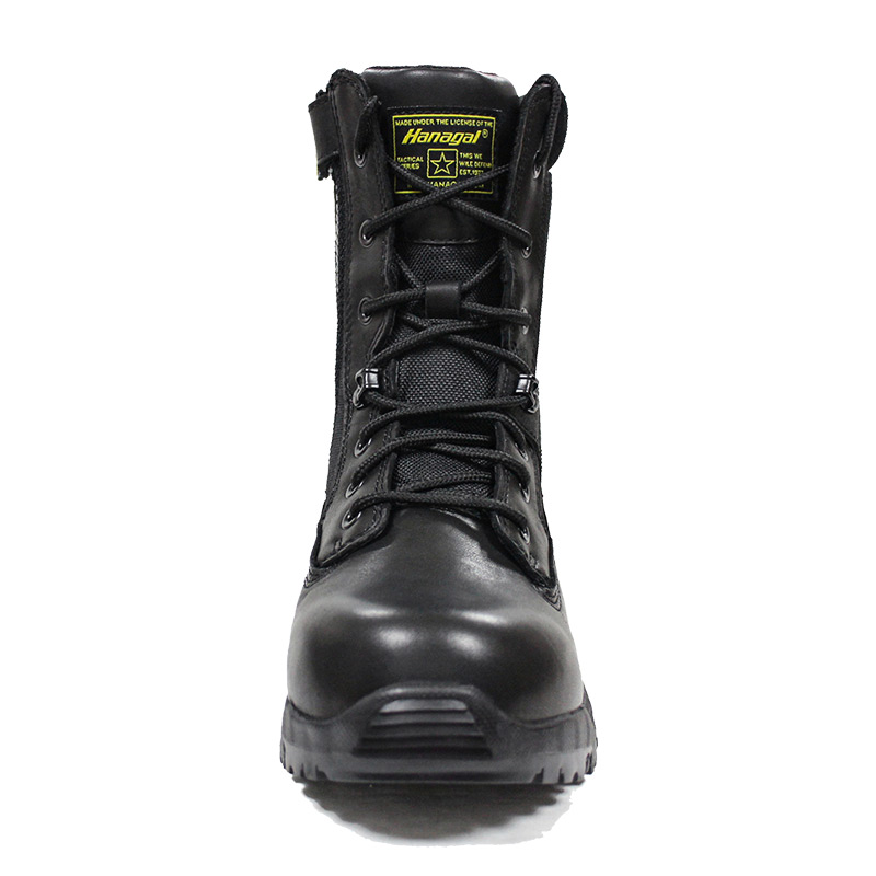 Polnozrnati usnjeni policijski škornji YKK z zadrgo