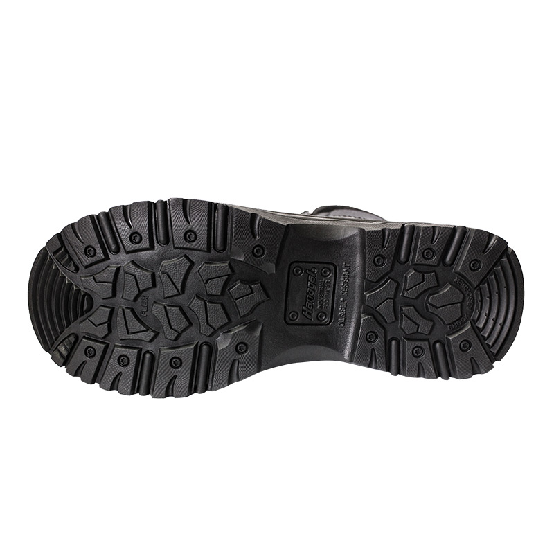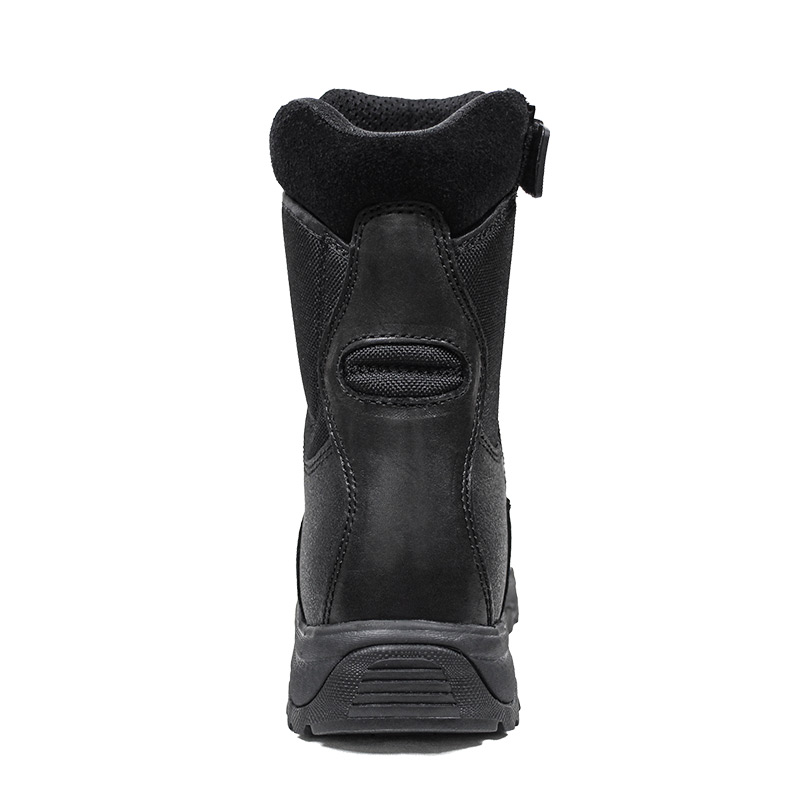 Policijski škornji YKK z zadrgo iz polnozrnatega usnja so bili izdelani za hitrost in mobilnost – ne da bi prihranili pri podpori ali vzdržljivosti, ko teren postane grd. Zgornji del združuje vodoodbojno polnozrnato usnje in zračno tehnološko tkanino, odporno na obrabo. YKK zadrga omogoča hitro in enostavno obuvanje/sezuvanje. Visok kroj se ovije nad gležnjem za dodatno zaščito in stabilnost. Pod nogami visoko zmogljiv vmesni podplat iz EVA zagotavlja resno blaženje, absorbira udarce in hkrati omogoča naravno gibanje vaše noge. In gumijasti podplat? Globoki, specializirani ušesi vam zagotavljajo oprijem, ki ga potrebujete – kilometer za miljo.